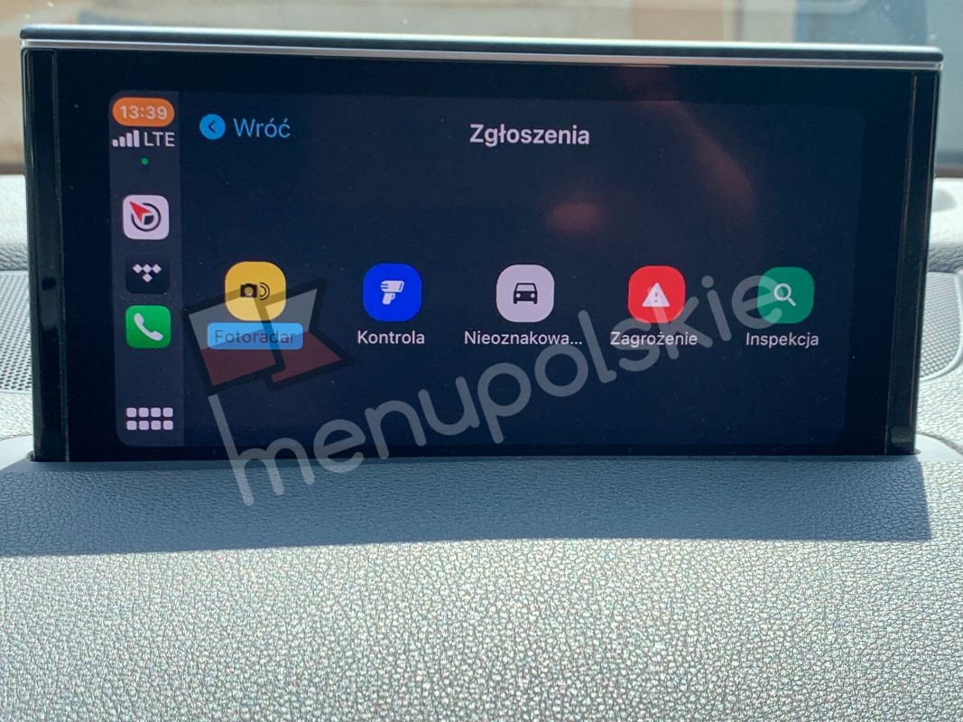 - aktywacja smartphone interface apple #carplay, #android auto (podłączając telefon z pojazdem na ekranie ukazują się aplikację np Mapy Google, Spotify, Yanosik i inne, którymi sterujemy z poziomu przycisków auta lub głosowo)