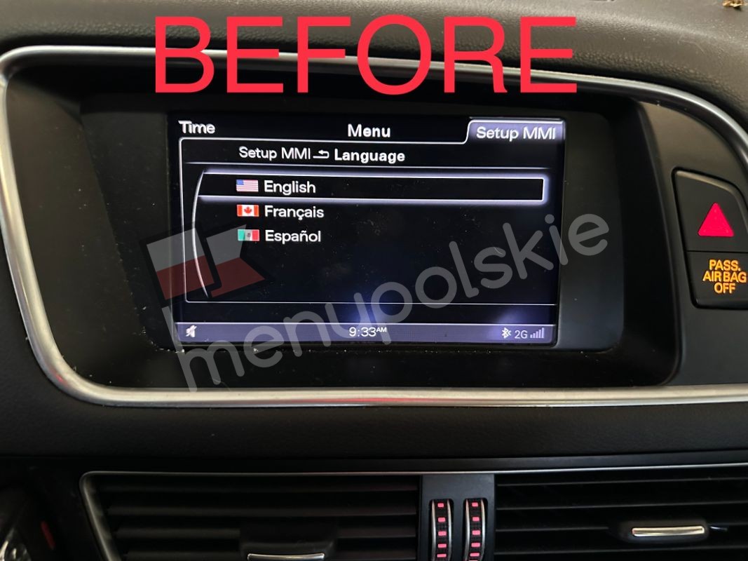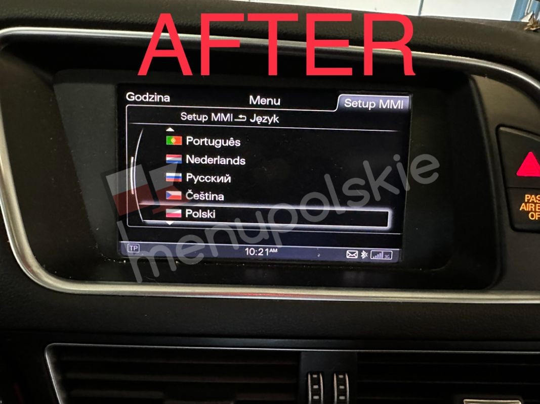 Konwersja audi usa europa (polskie menu audi całego systemu MMI i licznika, radio parzyste częstotliwości) dla AUDI modele: A3, A4, S4, RS4, A5, S5, RS5, Q5, SQ5, A6, S6, RS6, A7, S7, RS7, Q7, SQ7, RSQ7, Q8, SQ8, RSQ8